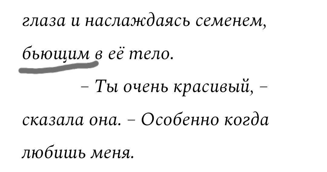 Третий вариант, он прислал ее отдельно. Я сейчас плотно езжу по врачам и вот сидя под кабинетом, народу много, решила прочитать. Хорошо что была в маске, но каких усилий мне стоило не ржать в голосину, эт подвиг. Бьющий из брансбойда, ага, угу, алюлю. Ваще в этих фразах все прекрасно он красив в оргазме, она его трахнула, но у нас — любишь. Я сейчас пишу эти строки и хохочу, потому что дальше было еще веселее, мы боролись за лифчик!