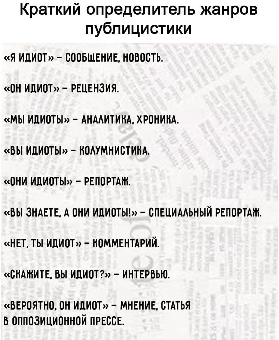 Краткий определитель жанров публицистики. Держите шпаргалку!😸