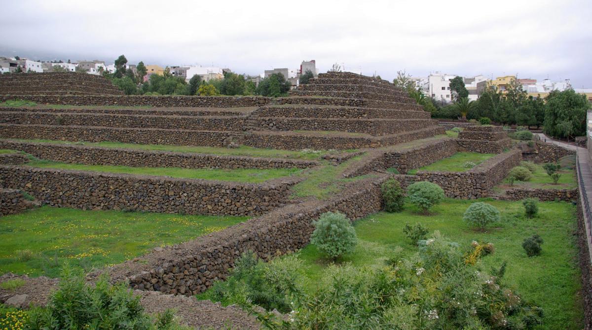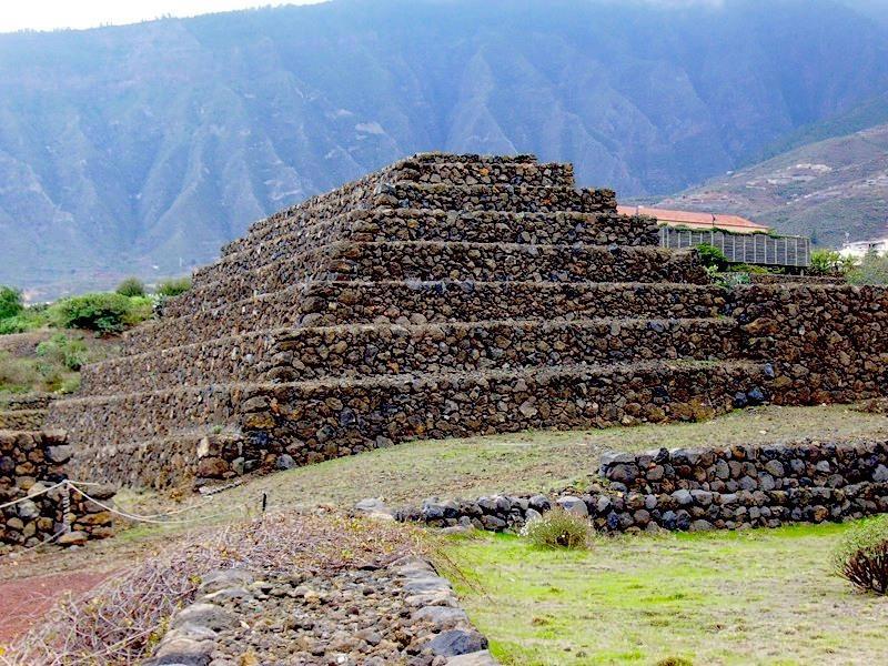 Итак, что есть такое пирамиды Испании? Нужно сказать, что в собственно Испании с пирамидами во общем-то напряжёнка. Однако на островах, на Канарских, всё выглядит получше. В частности на острове Тенериф есть аж целых шесть туристических объектов, которые выглядят как ступенчатые пирамиды. Вот, например, такая прямоугольная пирамида высотой 12 метров: