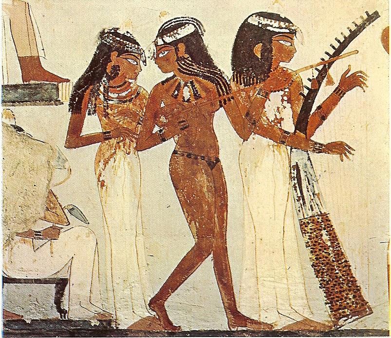 Тут, как Вы, наверное уже чутко уловили - все музыкантши, но в смелом наряде только одна, которая с чем-то типа домбры, а остальные - в банных халатах. То есть так наряжались не только спецтанцовщицы, но и другие дамы. У меня есть вариант, что минимизировали наряды исключительно те, кому было чем похвалиться. Да, здорово... посмотрите на фотку эскимосок ещё раз. Прям у одного кутюрье одевались. А? Нет? Хотя возможны варианты. Думайте сами. Вот для размышлений ещё одна картинка из «древнеЕгипета»: