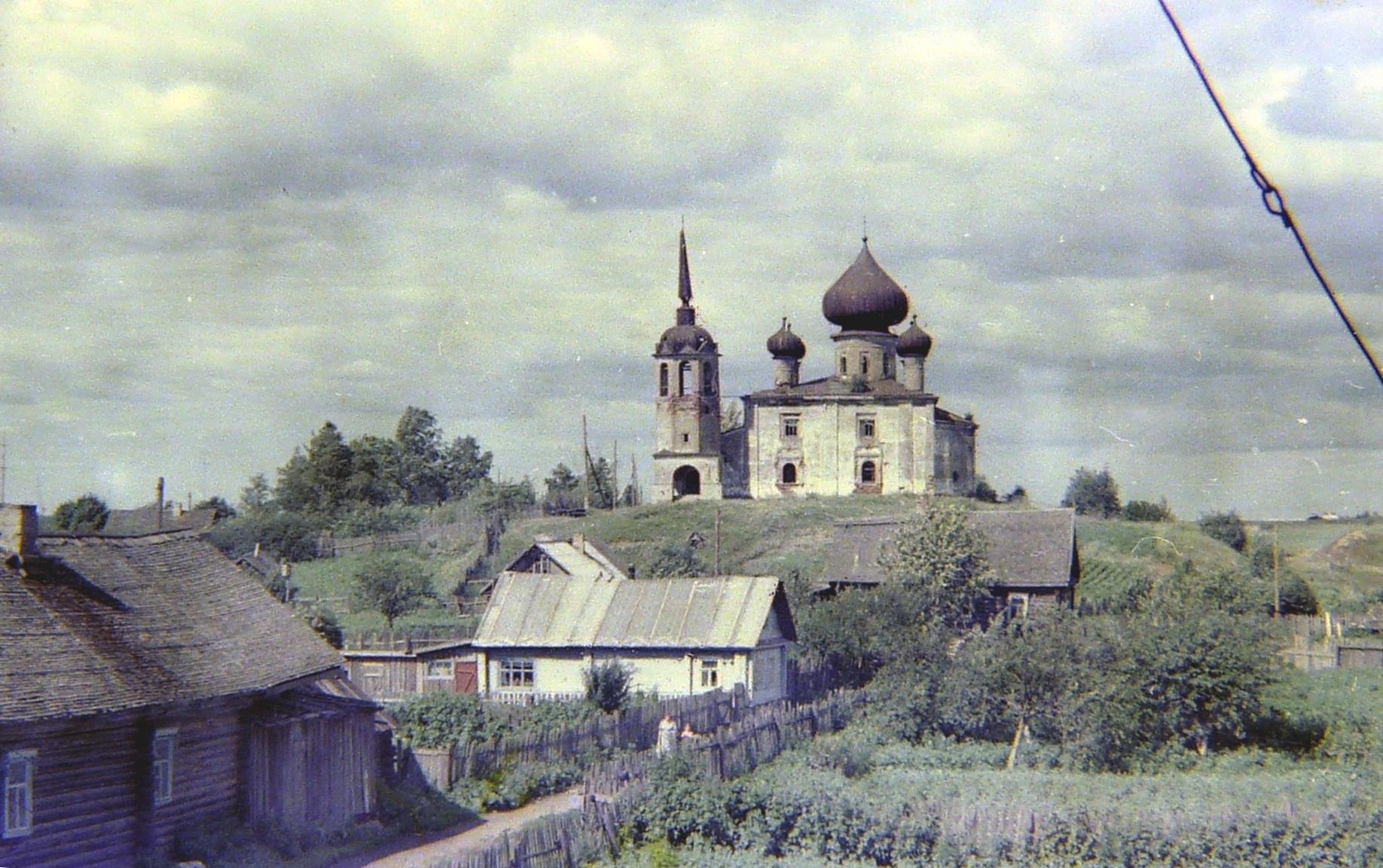 Снимок сделан в 1971 году фотографом, которого я не раз упоминал - это Лейзер Бенович Роль. Фото изначально цветное, это не современная раскраска. Впрочем, фото этой церкви с похожего ракурса есть даже у Прокудина-Горского полувеком с хвостиком раньше: