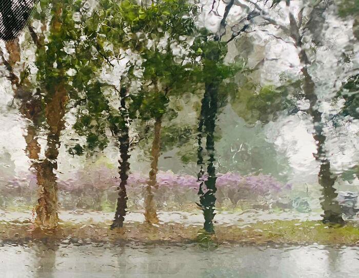 Акварельный пейзаж в стиле Импрессиони́зма Моне случайно получился на лобовом стекле машины во время дождя.