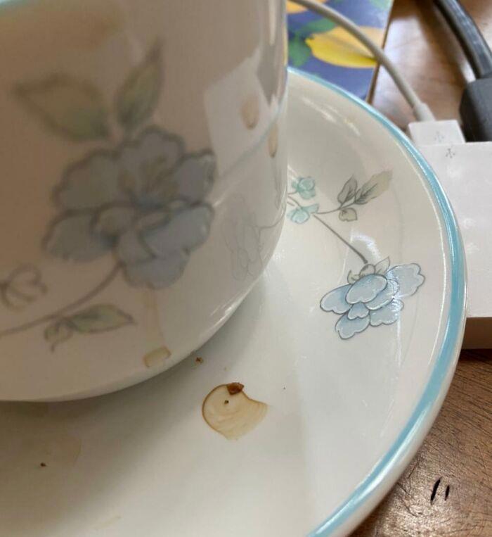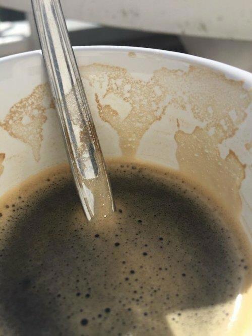 На внутренней стороне кофейной чашки получилась почти совершенная карта мира из параллельной вселенной.