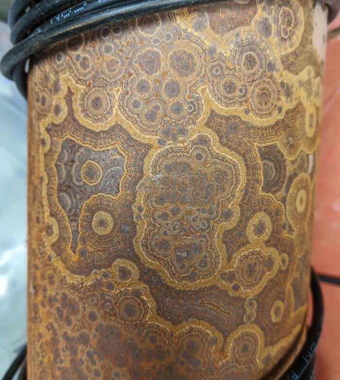 Завивки на бревне создали красивую и неповторимую абстрактную картину.