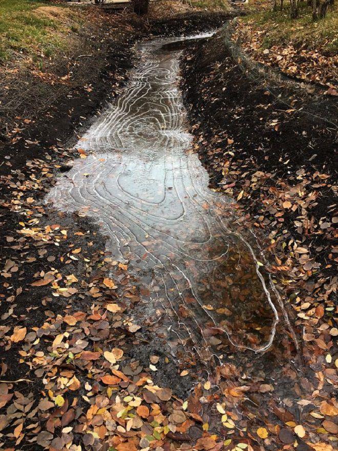 Замерзание поверхности этого лесного ручья создало картину, которую мы можем увидеть на топографических картах.
