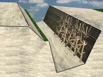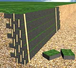 Таким образом можно без опалубки и внутреннего армирования деревом строить на равнине валы с крутизной в 70 градусов от горизонтали высотой до 5 м, а возобновляя строительство в последующие годы, когда земля слежится, высоту валов можно постепенно поднять до 30 м.