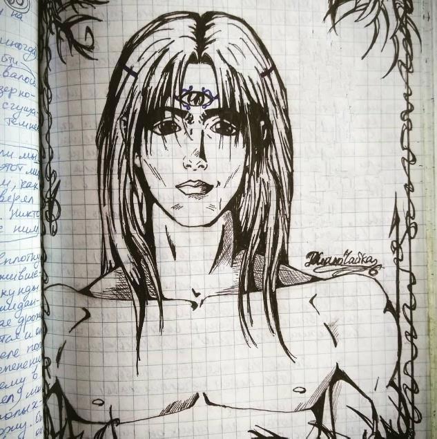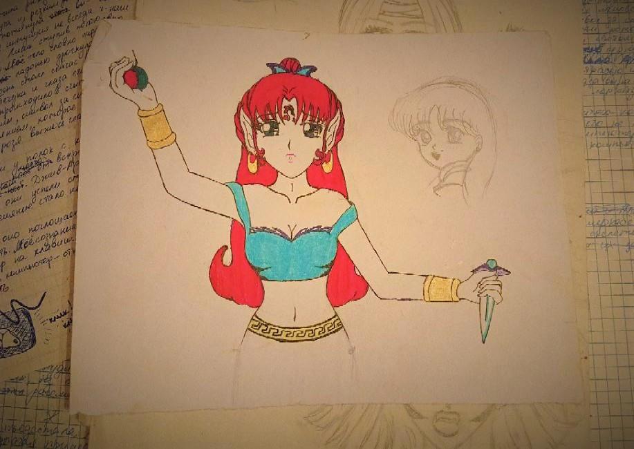 В свете того, что не так давно вновь вернулась к старому увлечению, но теперь в диджитал, на планшете, решила поискать дома, а не сохранилось ли хоть что-то с тех времен, когда я, будучи подростком, рисовала где только придется - тетради, блокноты и просто свободные листочки. Самых лучших двух, конечно не нашла. Умудрилась подарить их подругам Но кое что откопала.