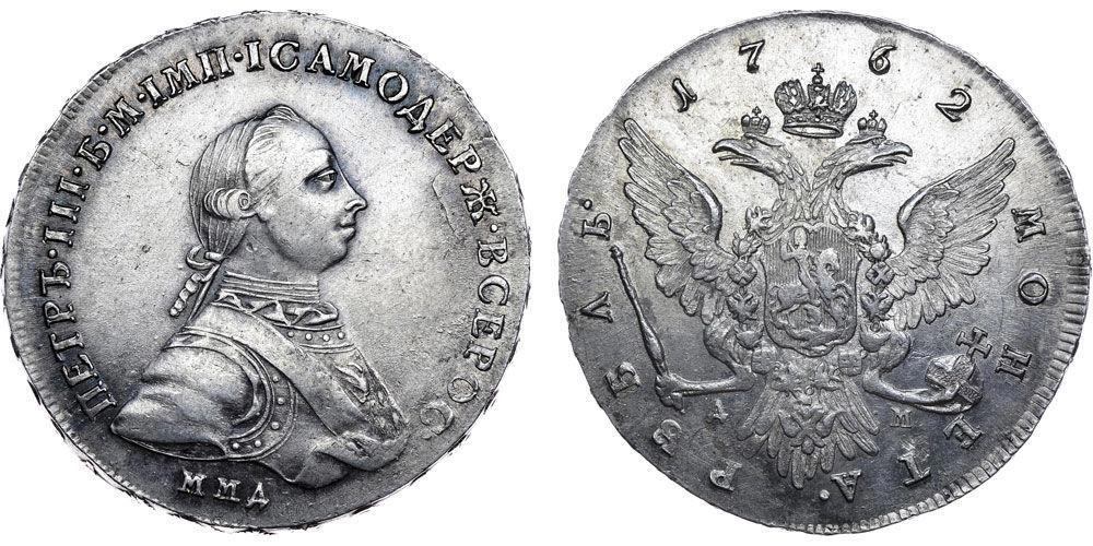 После воцарения Екатерины большинство из этих монет подверглось перечеканке (аналогичная история была при восшествии на престол Елизаветы Петровны - с монетами Иоанна Антоновича: https://author.today/post/32320). Сейчас рубль Петра III - вещь довольно редкая.