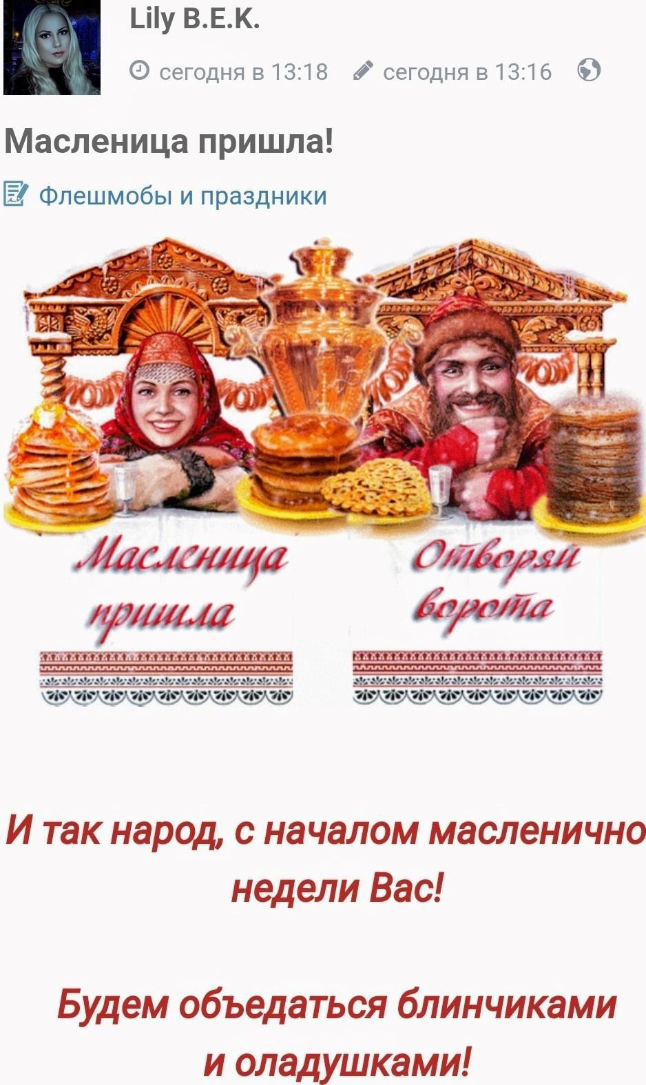 N.B. Поздравляю Всех с началом Масленицы! Пусть у всех всё будет очень хорошо во всех отношениях! И пусть будет хорошая, сытная и весёлая Масленица!
