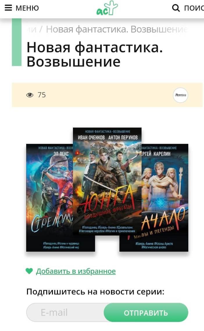 "Новая фантастика. Возвышение" Новая серия АСТ