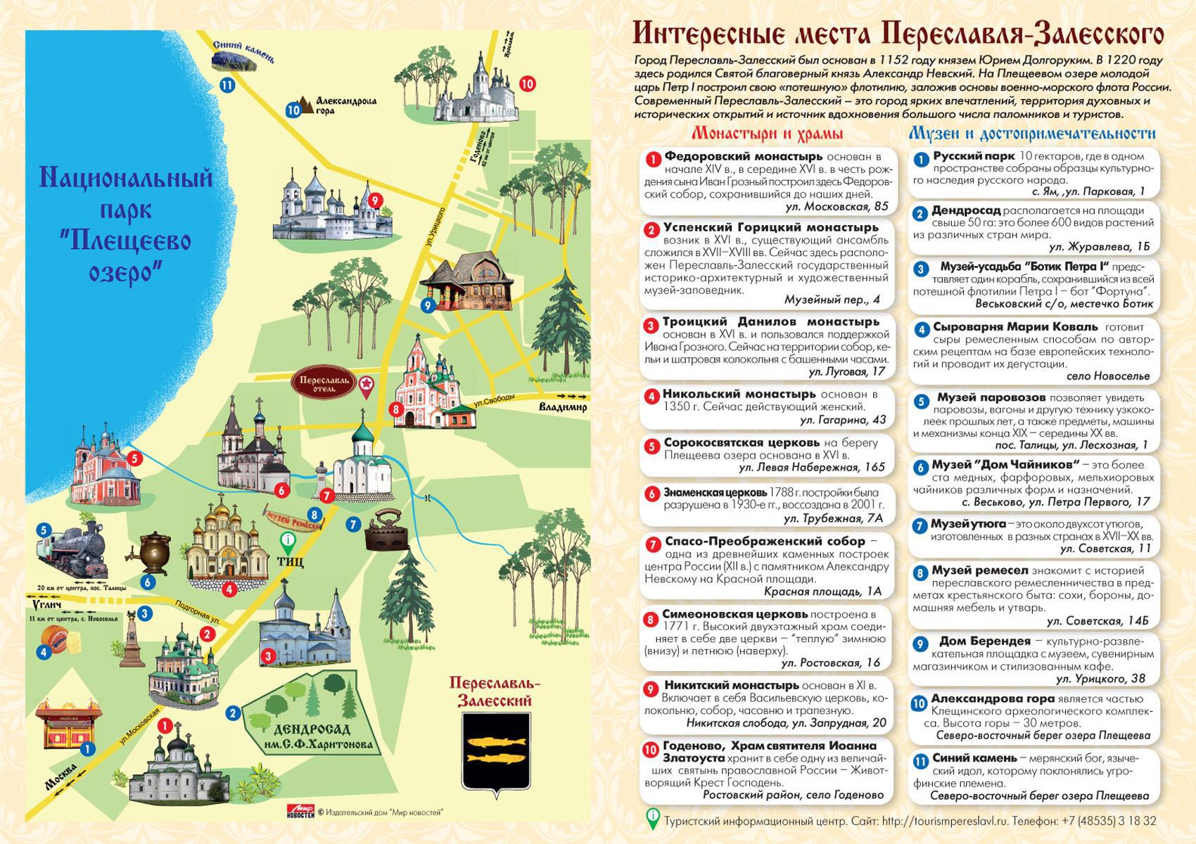 Это маленький город в 150 километров от Москвы, находится на берегу Плещеева озера. Множество монастырей, а в самом городе царит дух самобытности и фольклора. Здесь можно остановиться в одном из парк-отелей, гостинице, кемпинге или снять домик в деревне. Можно полетать на воздушном шаре, посетить множество музеев и даже попробовать себя в роли сыровара.