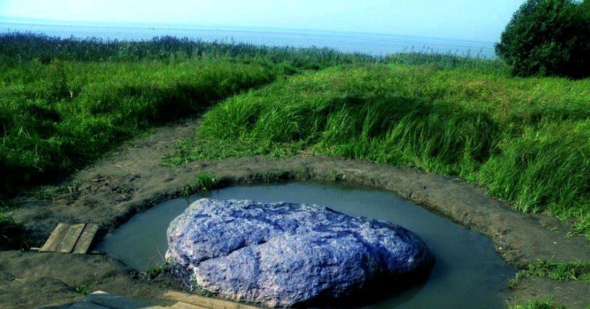 До этого монахи, считавшие камень дьявольским атрибутом, всячески пытались избавиться от него. Монолит даже зарывали, но земля всякий раз выталкивала кусок скалы из своих недр. 12-тонный Синь-камень обладает примечательной особенностью. Серый кварцевый сланец, из которого он состоит, становится синим после каждого дождя.