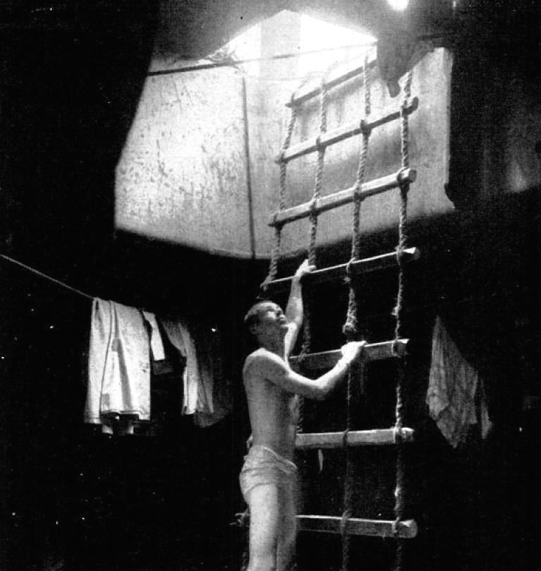 ДОПОЛНИТЕЛЬНАЯ ЛЕСТНИЦА ИЗ ТРЮМА, НА СЛУЧАЙ ЗАТОПЛЕНИЯ, БЫЛА СДЕЛАНА ЗАМЗАММЕРАМИ
