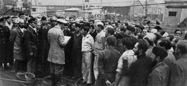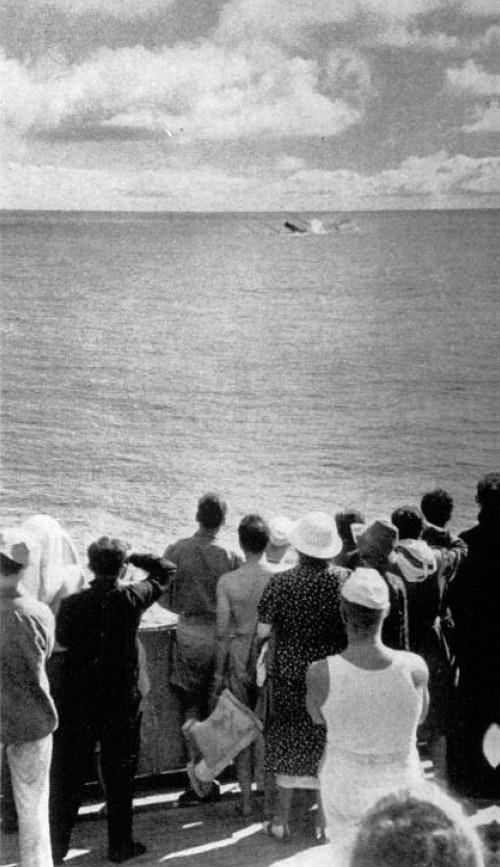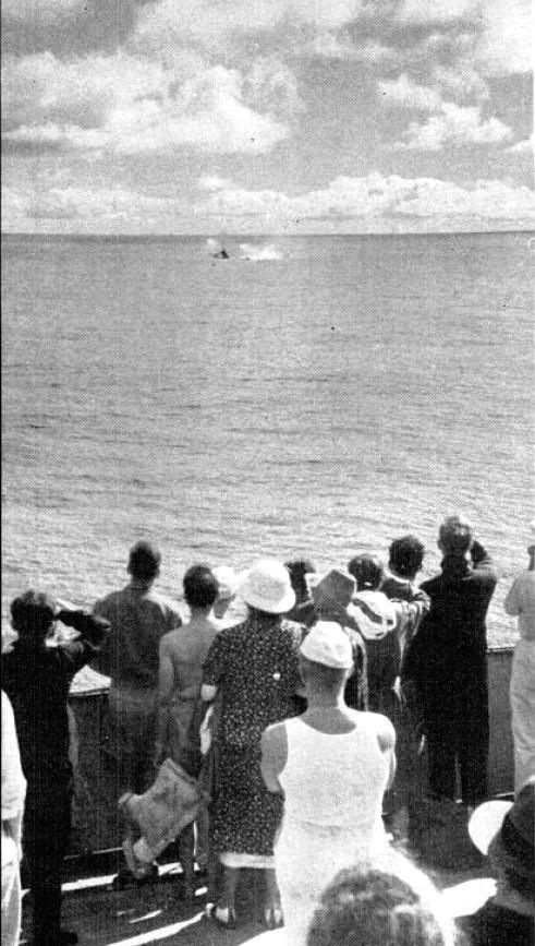 На шести фотографиях выше показано постепенное потопление египетского лайнера Zamzam немецким рейдером Tamesis в Южной Атлантике 17 апреля. Этот международный эпизод, впервые давший 138 американским мужчинам, женщинам и детям почувствовать горький вкус нацистского плена, был записан фотографом LIFE Дэвидом Э. Шерманом, пассажиром Zamzam, который вместе со своими попутчиками был сначала переведен на Tamesis, а затем на немецкий круизный лайнер Dresden для опасного 33-дневного путешествия обратно в оккупированную Францию.