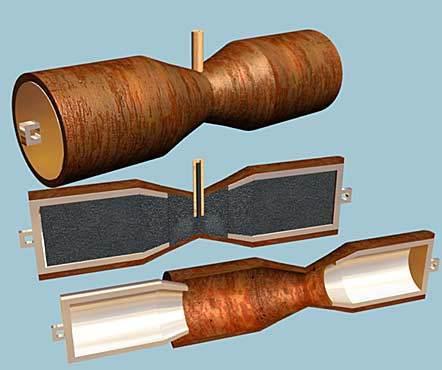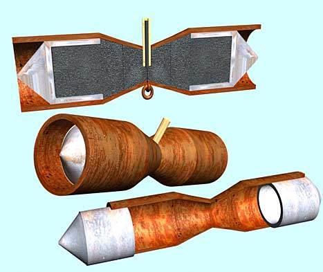 Достаточно очевидно, что при взрыве пороха оба снаряда разлетаются в противоположные стороны и за счет своей кинетической энергии разрушают материал стены.