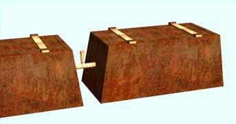 Если исходить из того, что порох обладает невысокой бризантностью при относительно высокой фугасности, проще говоря, обладает хорошим метающим действием, то можно предположить, что эти два ящика, вставленные друг в друга, представляют собой два снаряда, разлетающиеся при взрыве в противоположные стороны (один вниз, второй вверх). И уже за счет кинетической энергии (ударного действия) ящиков происходит разрушение стены. Тогда становится возможным массивность ящиков.