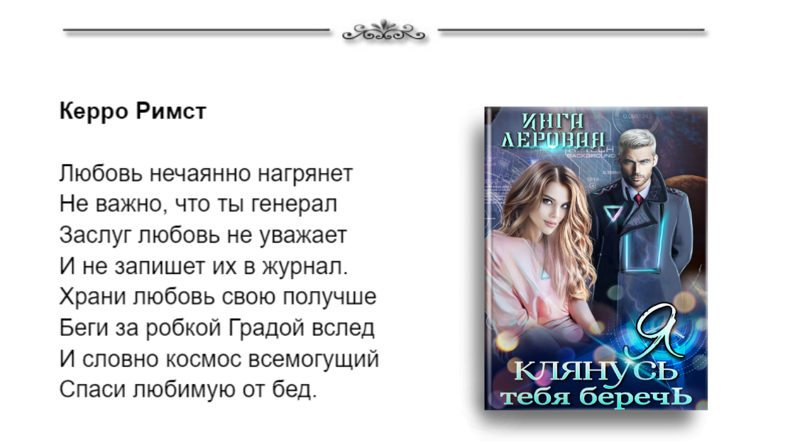 А возможно, вам захочется сочинить свой стишок. Про героев моих книг и/или для своего мужчины.
