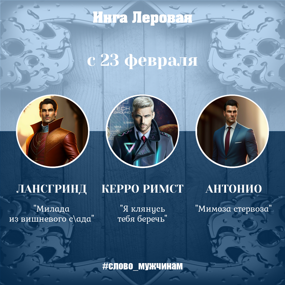 23 февраля у нас праздник доблестного воина (в моих книгах крутого героя) и хочется чего-то торжественного и парадного, но гарантированно милого - даю слово мужчинам. Генералам, боссам, королям, магам, альфам и пр. Им есть, что сказать. У них всегда имеется свое мнение, просто часто за щебетом нежных, а то и строптивых героинь, его плохо слышно.