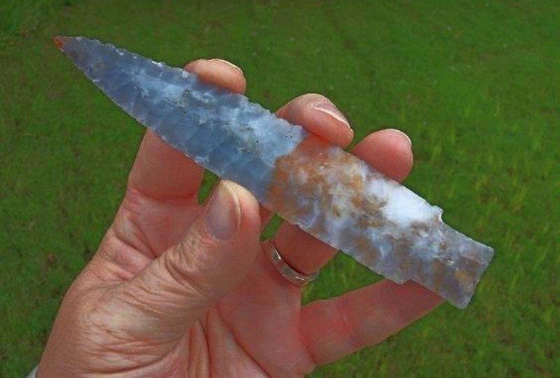 Да, это и есть самое замечательное изделие во всём комплексе. Изготовлено оно, так же, как и наконечники стрел, из горного хрусталя с высочайшим качеством. Там же нашли ещё вот такие наконечники поменьше (но не попроще):