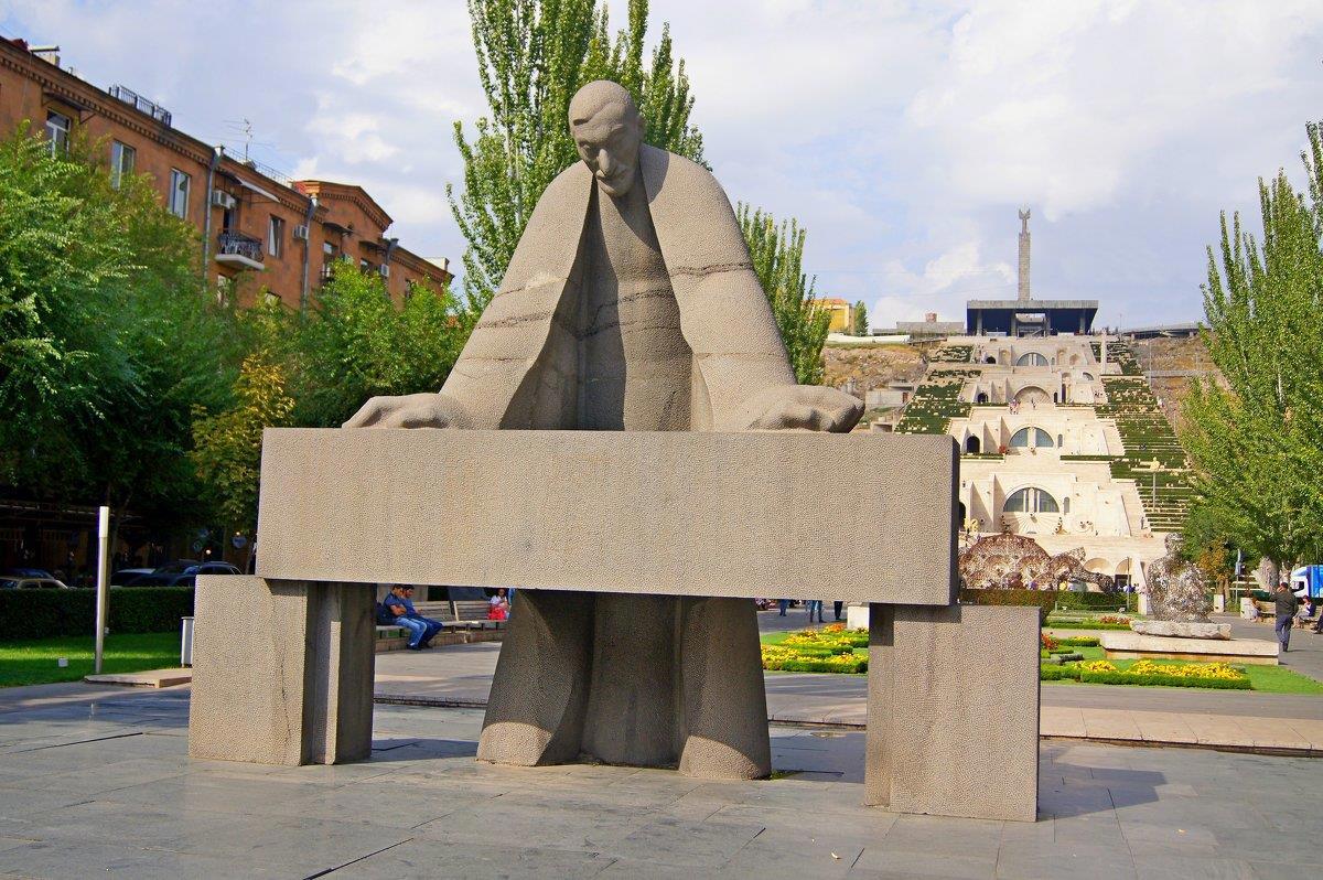 Памятник Таманяну, архитектору Еревана, частенько украшают надписью Yamaha или KORG и получается «Мужик за синтезатором»: