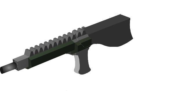 Э… стоп… А как же держать оружие, стрелять из него? Можно, к примеру, сделать на боковине выступ точно под перчатки бронекостюма или поставить небольшую скобку. А можно просто обхватить корпус оружия перчаткой. Можно на перчатке сделать специальные захваты. В общем, придумать можно много чего. Мы же не ограничены возможностями человеческого тела, как при конструировании обычного огнестрельного оружия. Правда, мы снова приходим к концепции встроенного в бронекостюм вооружения.
