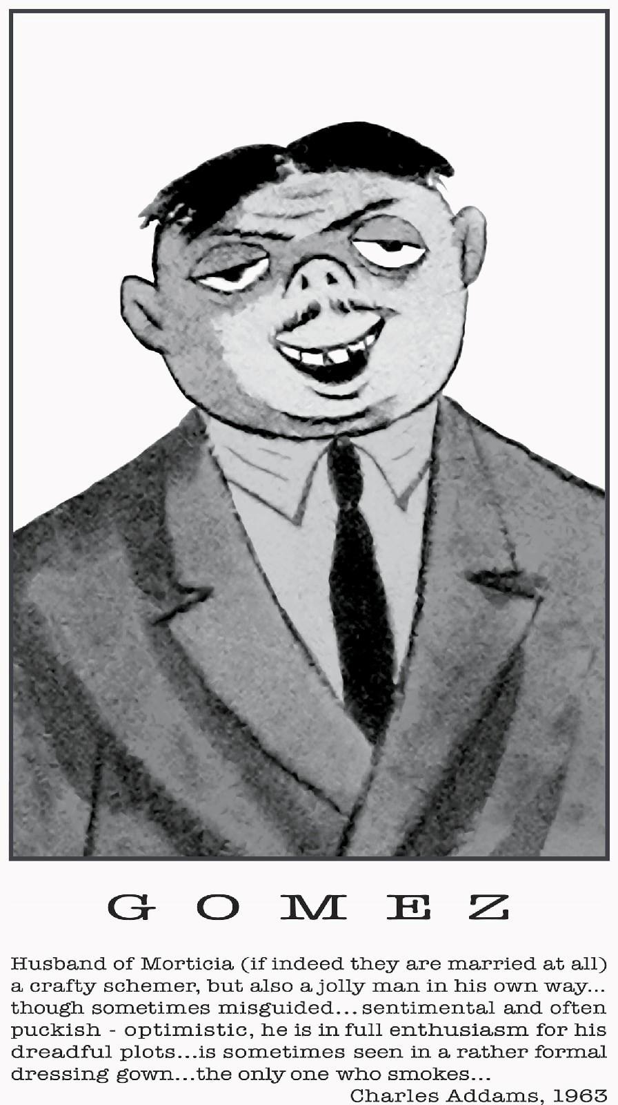 Муж Мортисии (если они вообще женаты) коварный интриган, но также по-своему веселый человек... хотя иногда и заблуждающийся... сентиментальный и часто озорной оптимист, он полон энтузиазма по поводу своих "ужасных замыслов"...is иногда его видят в довольно формальном халате...единственный, кто курит...
