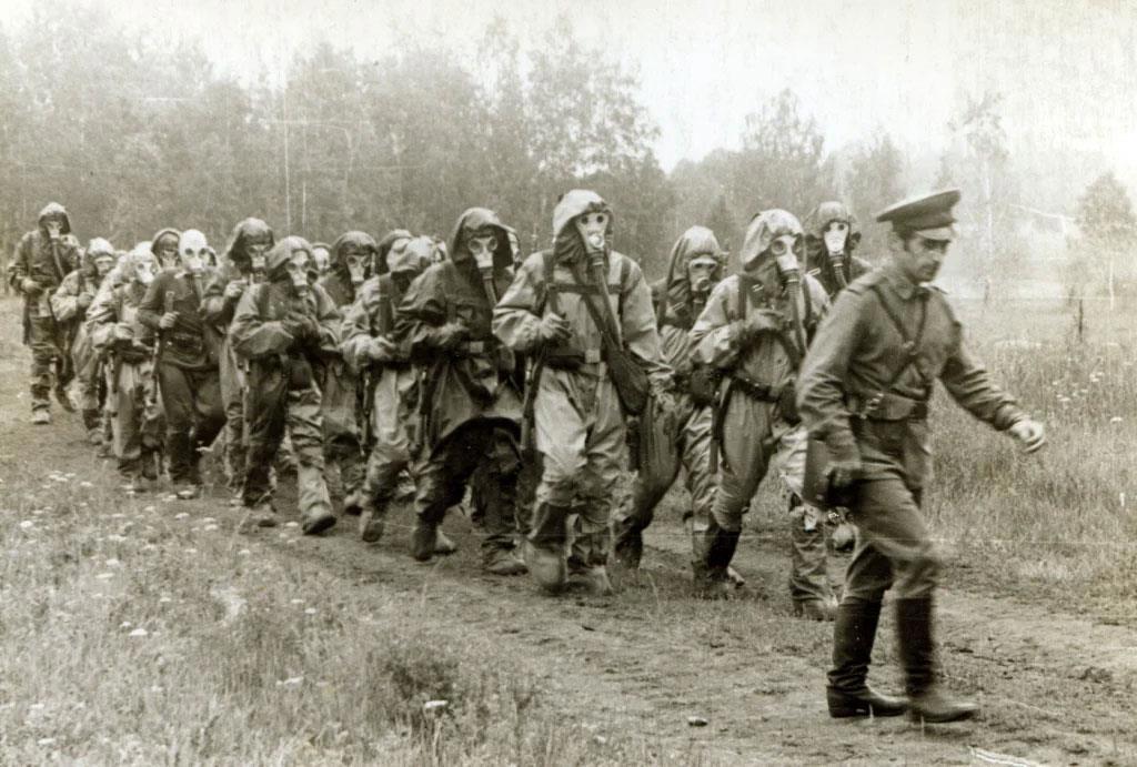Отделение напяливает противогазы и бежат дальше, но тут из строя вываливается Володя К., спокойно снимает «слоника», кладет автомат на траву и ложится рядом. Готовый взорваться Бублик подскакивает к нему и орет: