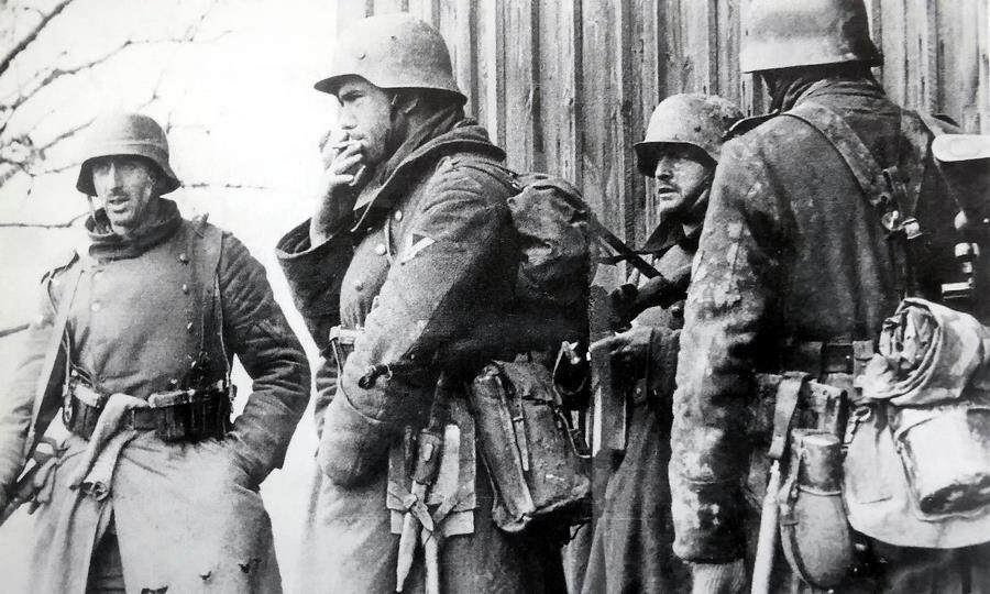 Автор: Николай Берг1945 год - но бывалые солдаты еще в вермахте есть. С сигаретой - старший ефрейтор - высший чин рядового состава.