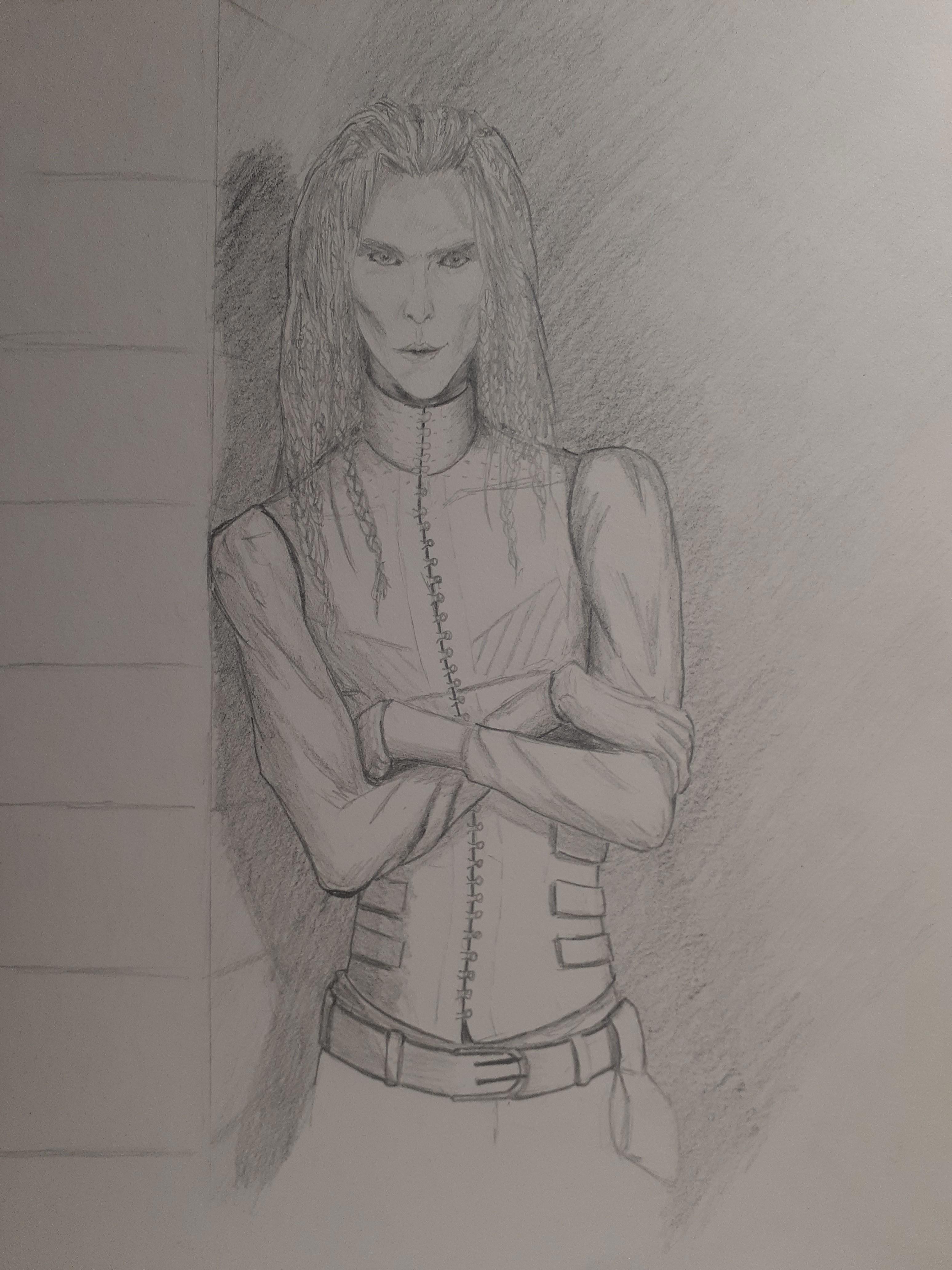 Чтобы не плодить блоги, закину еще сюда две картинки. Работу нейросети с исправлениями и мой рисунок. На обеих изображен Ашту, один из гг. На работе нейросети он как-то молод и прекрасен - дорисовывать ему косички я устала, поэтому он точно молод! Зато на моей мне выражение лица понравилось
