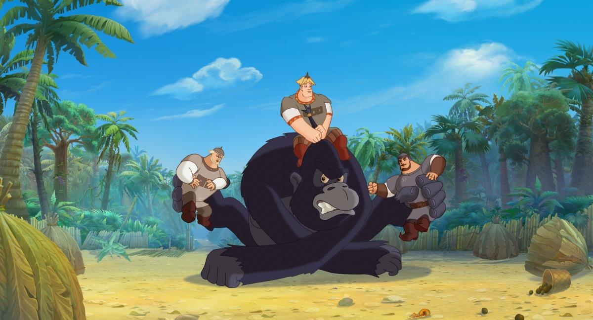Начинается мультик с того, что трех богатырей выключают и забрасывают куда-то в район Таити (в общем черте куда). Они застревают на острове с туземцами и местным Кинг Конгом (которого конечно обучают уму разуму).