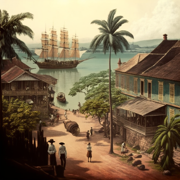 Грейсфорт, столица колонии, в котором происходят события главы, и праздник, который появляется в воспоминаниях ГГ (как-то уже постил эту иллюстрацию, хвастался).