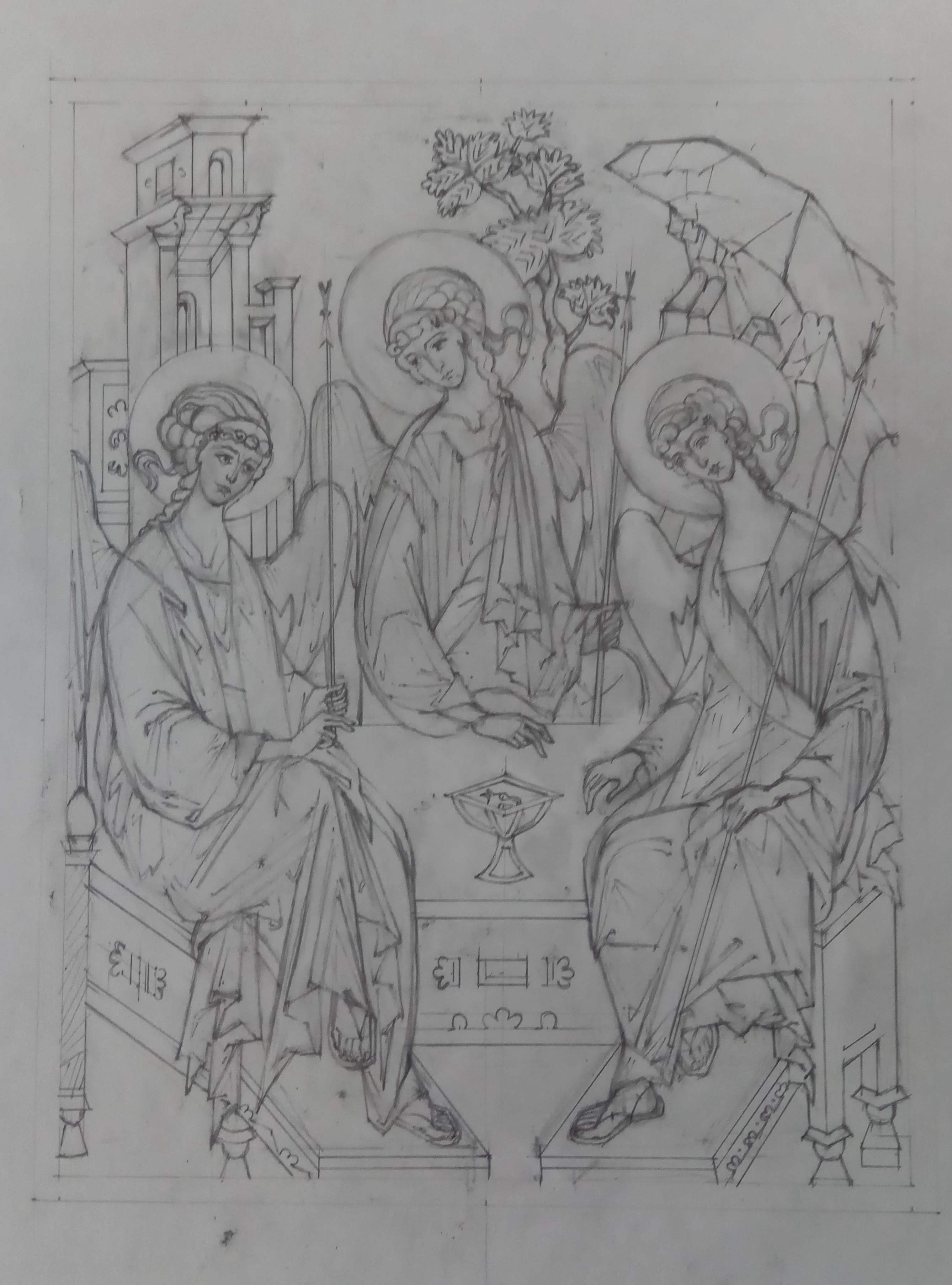 Автор: Алексей ЕвтушенкоСегодня Прощёное воскресенье, не забудьте, православные, попросить прощения у близких и далёких, это хорошее и нужное правило, как я думаю. Вместо карикатуры вам сегодня - рисунок Святой Троицы, из которого потом рождается икона.
