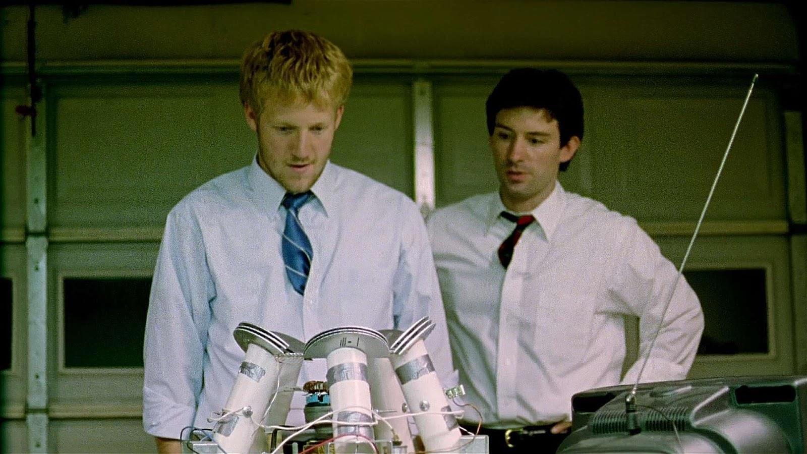 Молодые люди построили в гараже машину времени и стали с помощью нее делать деньги. Потом они стали друг от друга делать разные вещи с машиной. В результате один из них исчез.