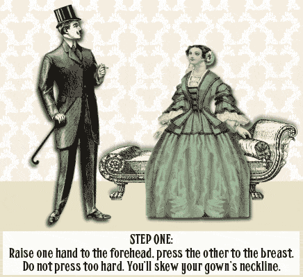 Шаг 1. Приложите одну руку ко лбу. Вторую прижмите к груди. Не переусердствуйте, иначе вырез платья может перекоситься.