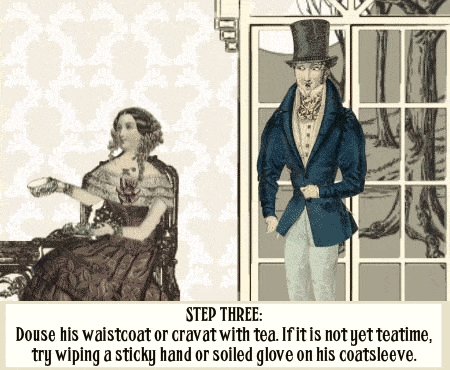 Шаг 3. Плесните ему чая на весткоут или галстук. Если время пить чай еще не пришло, схватите его за рукав липкими руками или грязной перчаткой.
