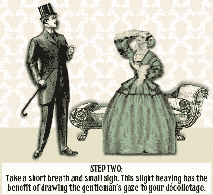 Шаг 2. Сделайте неглубокий вдох и выдох. Это поможет привлечь взгляд джентльмена к вашему декольте.