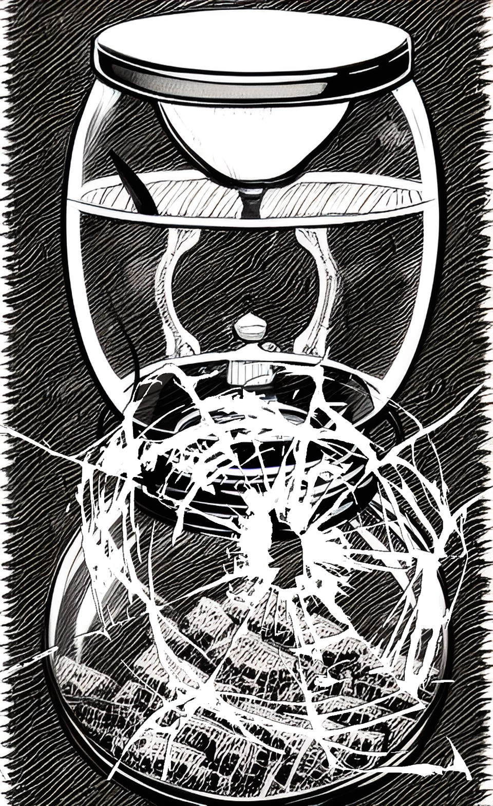 Нарисованный углем исхудавший старик в серых лохмотьях держал в руках треснувшие песочные часы, а меж его пальцев прахом струились железные цепи, которые сюрреалистично расплывались по низу холста вязкими реками, сливаясь с общим фоном картины. Задний план был пуст, а черные как смоль глаза старца словно засасывали внутрь и не имели четких очертаний, как и весь его образ в целом.