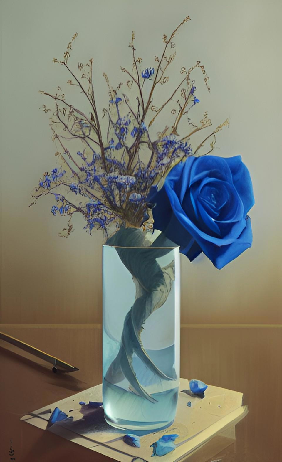 (Картина вымышленная. Рисовать её также будет иллюстратор, когда придет время. К сожалению, я не могу в короткие сроки вытворить полноценное изображение икебаны, по этой причине использую наиболее уместную картинку для показной иллюстрации. В создании изображения была использована нейросеть)