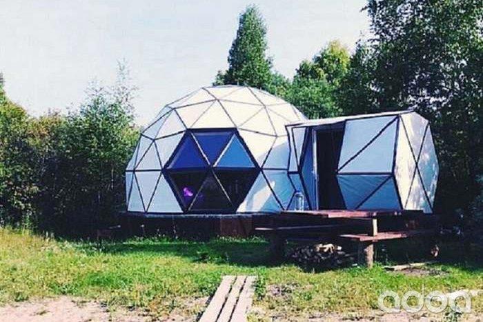 Эко кемпинг Сфера, мне понравился Геокупол, также есть «домики» в виде Юрт, Эко шалаш, Эко шатер, палатки.