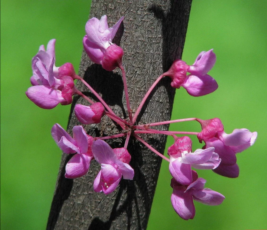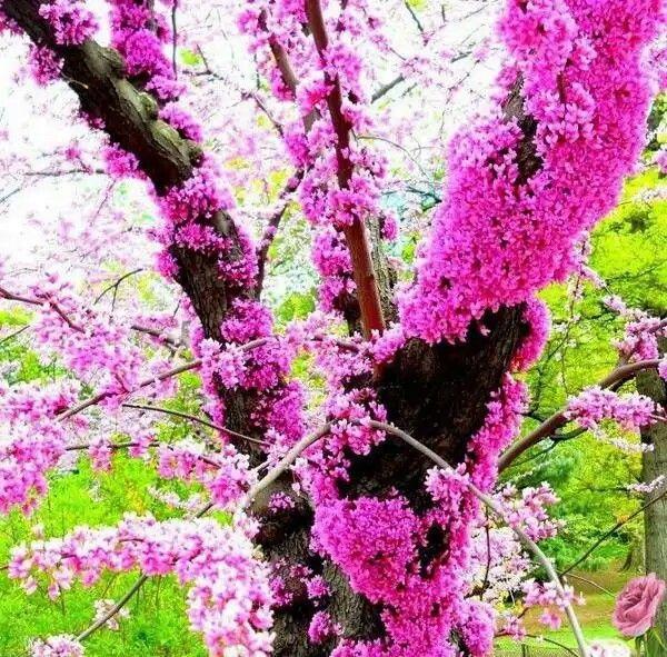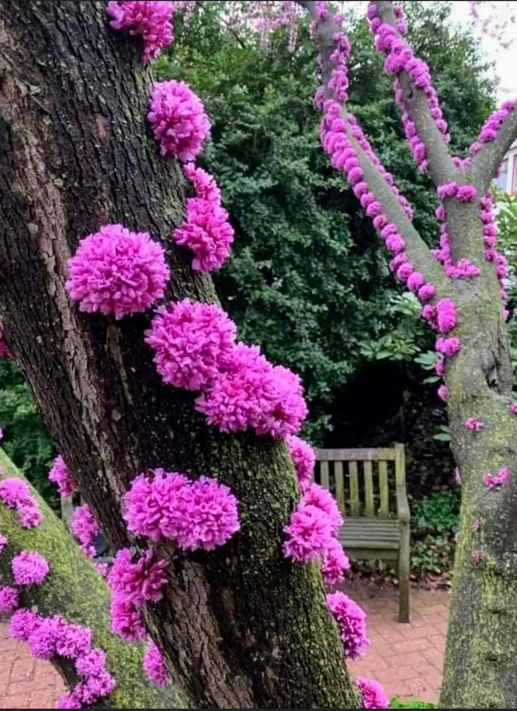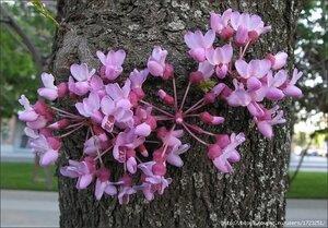 Дерево "Иуды" или Церцис. Цветы растут прямо на стволе.