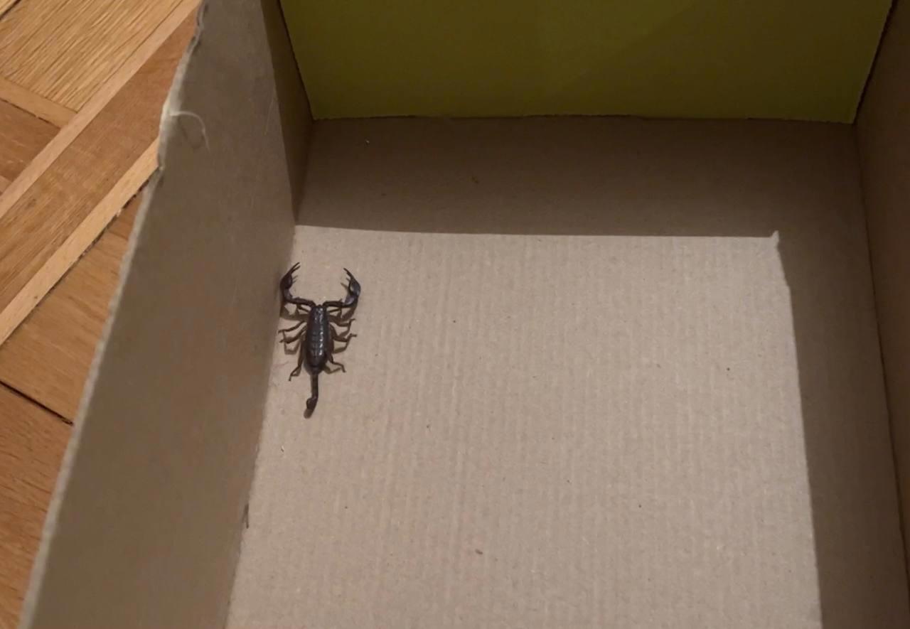 Четыре см в длину. Скорпиона мы назвали Семёном.
