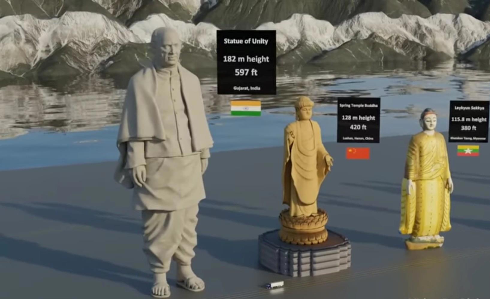 Статуя Единства — самая большая в мире, она находится на острове Садху в Индии. Ее высота вместе с постаментом — 240 м, без него — 182 м. Это почти в 2,5 раза выше статуи Свободы. Автором проекта стал индийский скульптор Рам Сутар. Статуя Единства была открыта по случаю 143-й годовщины со дня рождения Валлаббхаи Пателя в 2018 году.