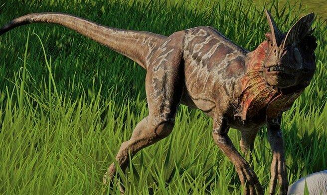 Данный хищник проживал на территории Северной Америки примерно 183 млн лет назад. В длину взрослая особь вырастала до 7 м, а ее масса могла доходить до 400 кг. Позвоночник дилофозавра состоял из 69 позвонков, причем 45 приходились на хвост. На шее имелся изгиб в 90 градусов, из-за чего голова находилась в горизонтальном положении. На верхней челюсти располагался дугообразный костяной нарост.
