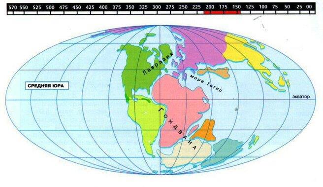 Континенты в юрский период