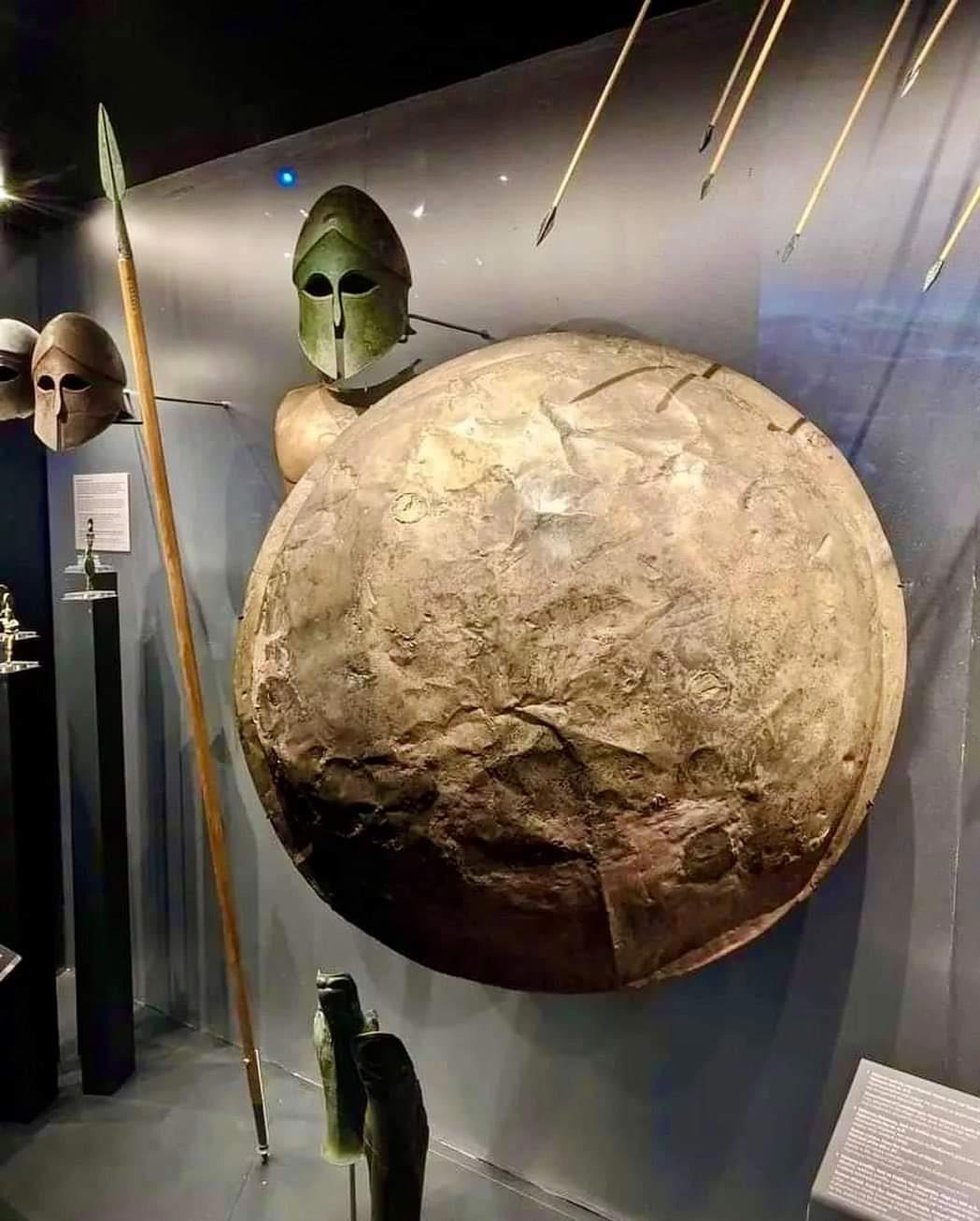 Фотография сделана с экспозиции Национального археологического музея города Афины. На ней вооружение спартанского гоплита и стрелы персидских лучников.