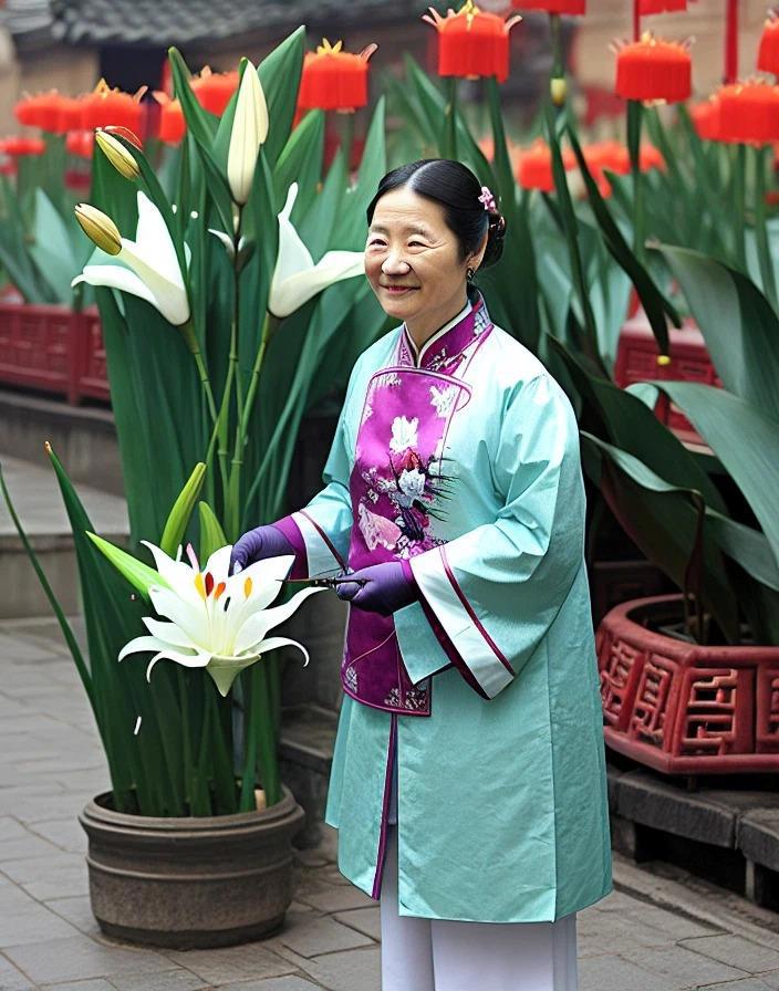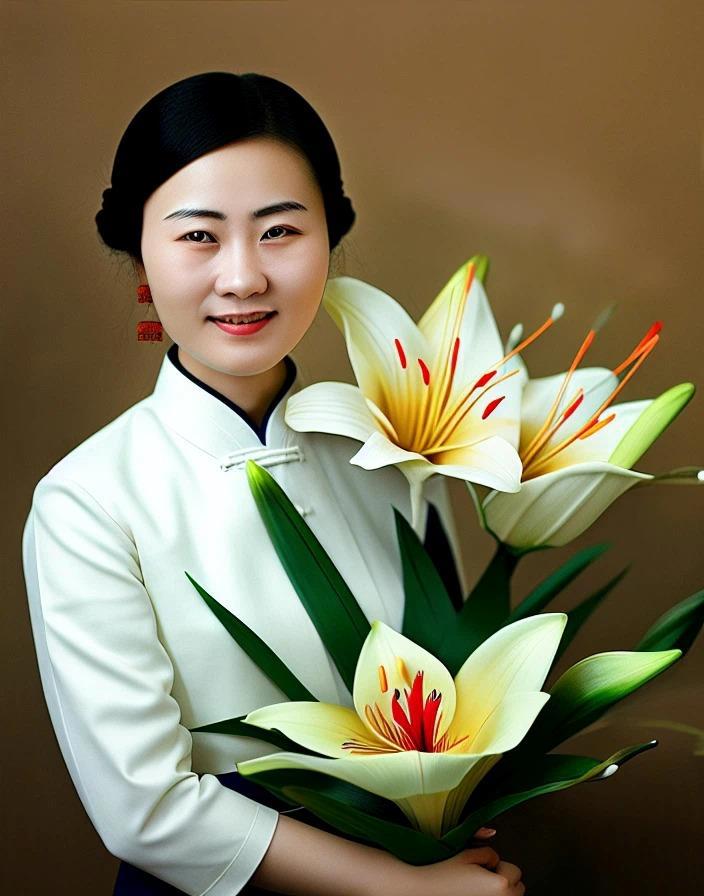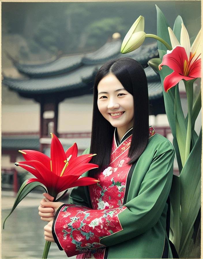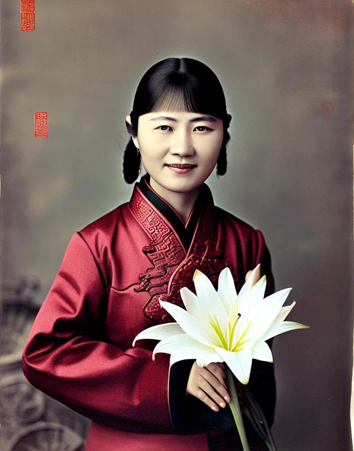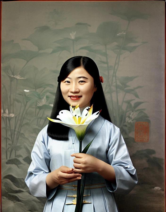 Ну и на последок: Chinese woman holding a lily