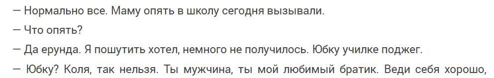 Я робкая, зачуханная закомплексованная девушка из неблагополучной семьи. Мама у меня пьёт, папа нас бросил, зато младший братишка весёлый: