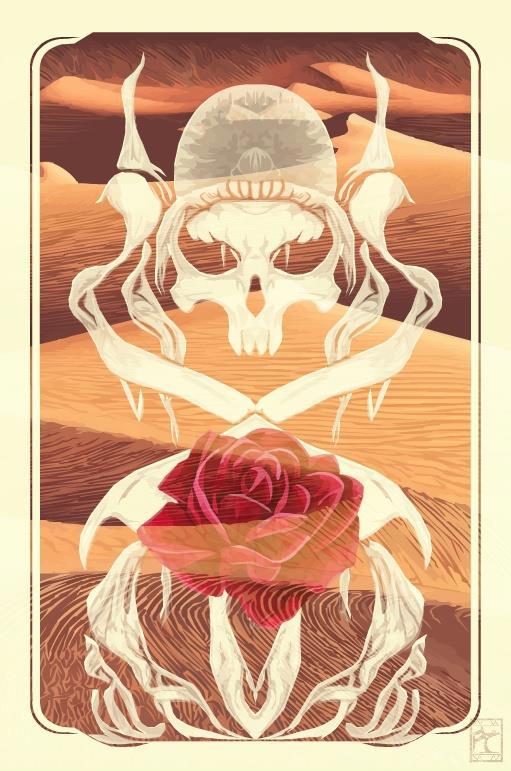 Автор: Максим ГордеевОтносительно недавно нарисовал в Adobe Flash обложку к одному из своих рассказов. Она мне чуть не сломала голову, ибо я долго над ней думал. Причина этого проста - работа про жизнь и смерть, но не в виде Костлявой и чего-то природного, светлого, и я хотел обобщённо/нейтрально изобразить два понятия из названия. Почему-то цветок мне очень понравился в качестве дара. Как и зловещие, аморфные формы в качестве проклятия. Пустыня же на заднем плане - лишь сцена из рассказа. Тут я долго не думал. Хе-хе.