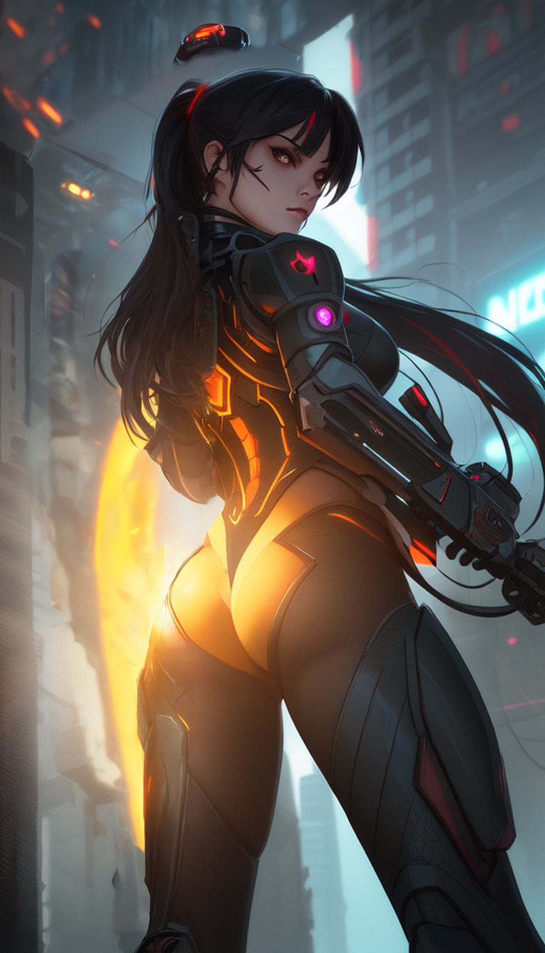Что мы тут видим? Ну, кроме красивой девушки и интересной позы, конечно же? Во-первых, неведомо что на спине. Какая-то нелепая половинка джетпака. Что с ней делать? Пропускать через inpaint, конечно же!