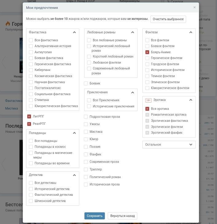 Но смотрю, что-то не так с показателями для ГН. А потом вспомнил, что у меня стоит ограничение на подбор жанров.